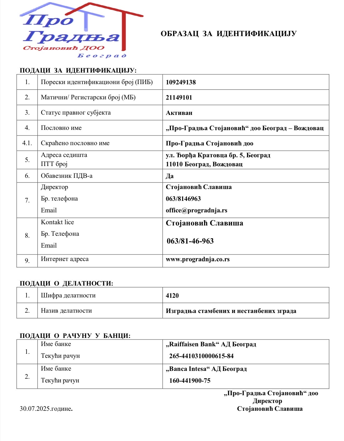 - insvesticiona gradnja stambenih i poslovnih objekata i prodaja istih.